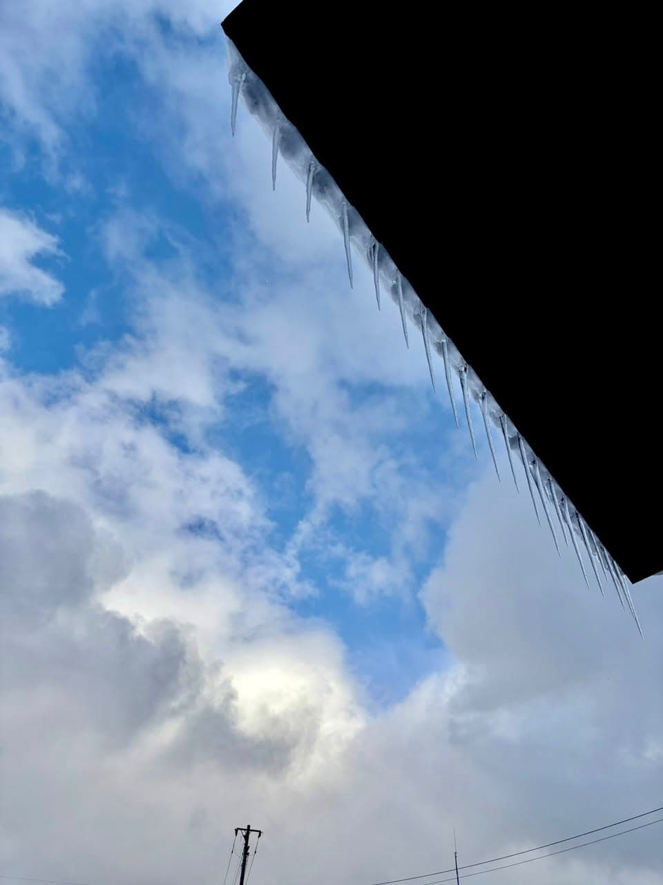 雪とのたたかいですわなー 吹雪が一瞬晴れて青空が見えた瞬間