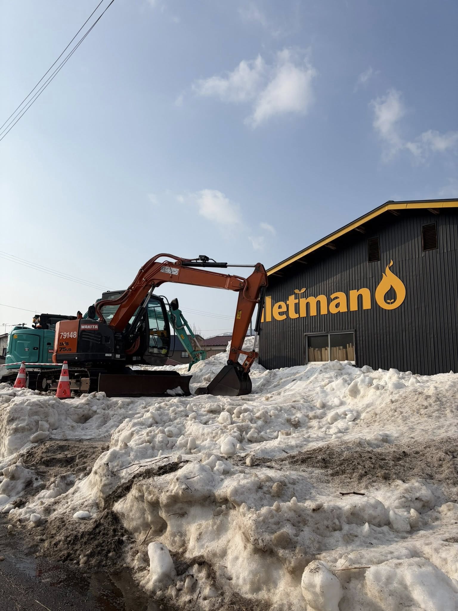 ペレットマンのファクトリー倉庫を覆っていた雪の壁が