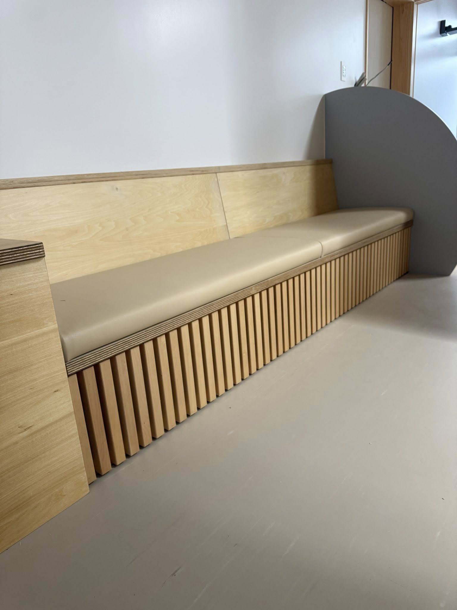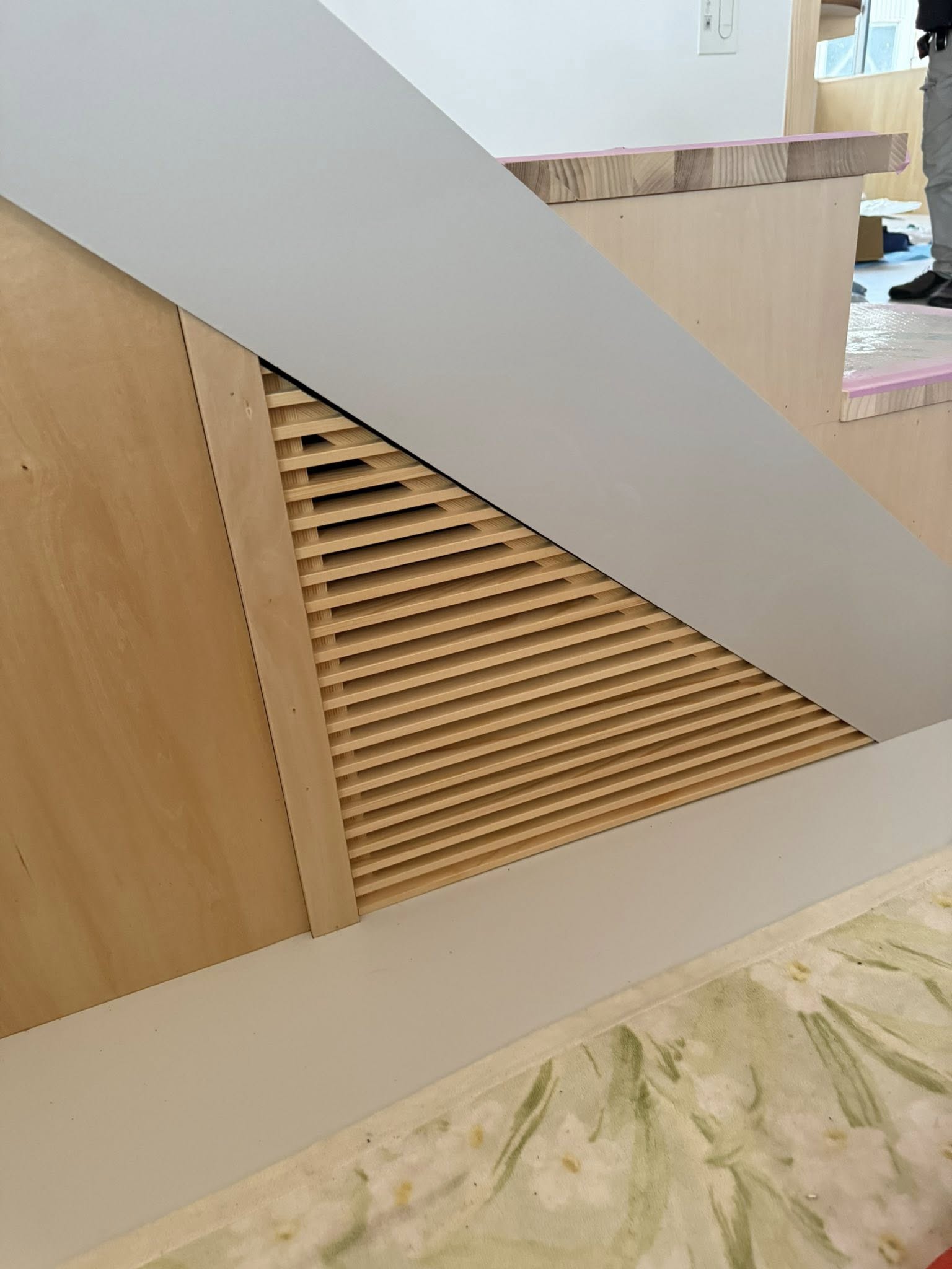 一旦床を潜ってベンチ下部やあちらこちらにに温風を送り届けます。